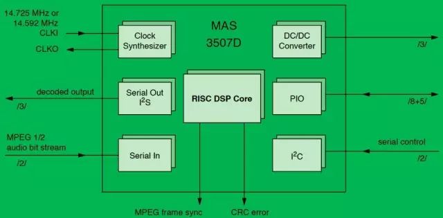 正如这个 Micronas 的设计文件所显示的,MAS3507是只为做好一件事设计的,即只能很好地解码 MPEG Audio Layer III(即MP3)数据。