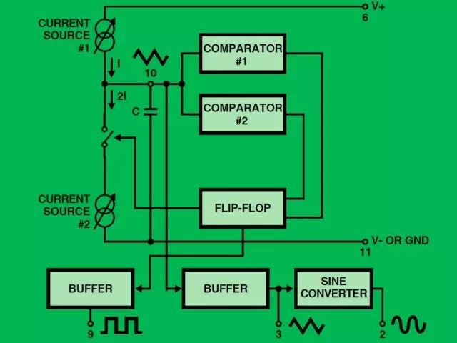 一个好的基本波形——随时间变化的电压——是构建更复杂行为的原材料。Intersil的ICL8038 集成电路的设计是为了方便地获得精确的波形,能够同时产生正弦波、矩形波和锯齿波等周期信号,只需要很少的外部元件。
