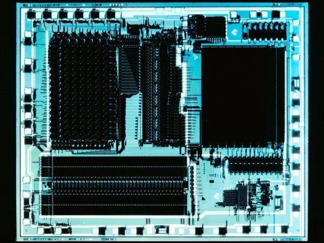 金盖下面是一个32位处理器,但是连接它和外部世界的封装内,只有16位数据引脚。 照片:Arnold Reinhold