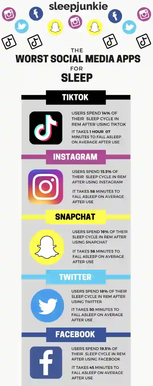 而且调查还发现,比起其它应用来说,刷TikTok之后入睡所需要的时间最久。