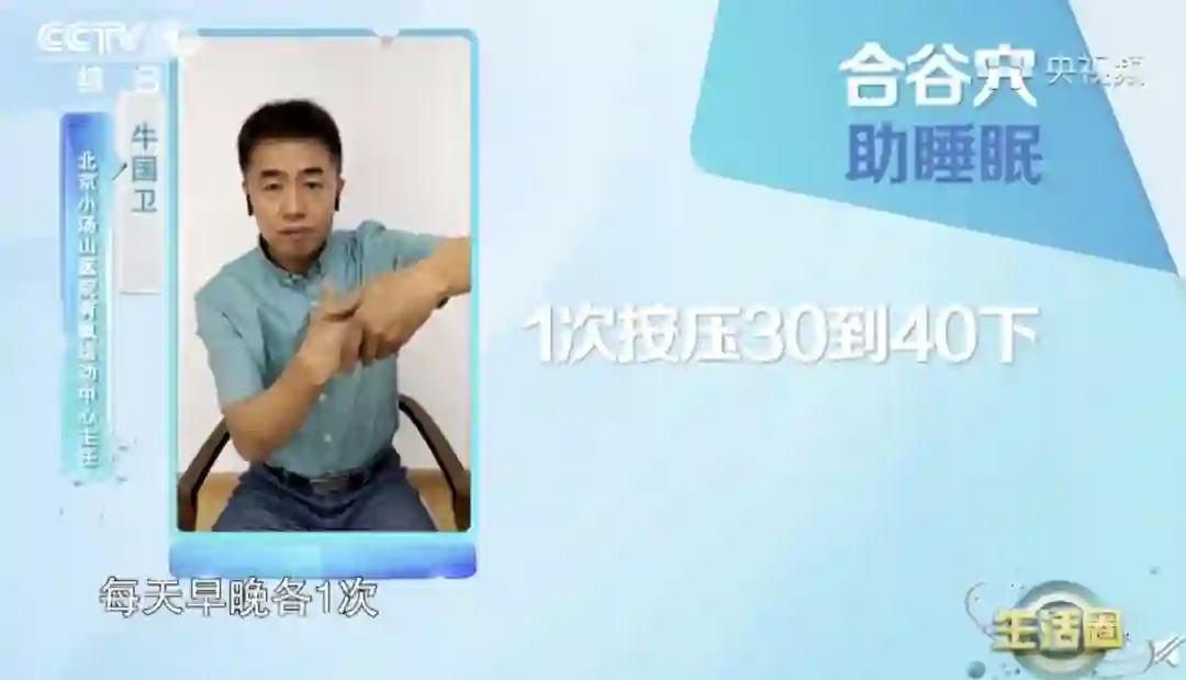 除了上述需要注意的避雷区外,央视也给出了一个有助于睡眠的“小妙招”——按虎口: