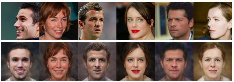 图:使用输入的任意角度人脸图像生成正面的人脸图像