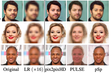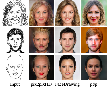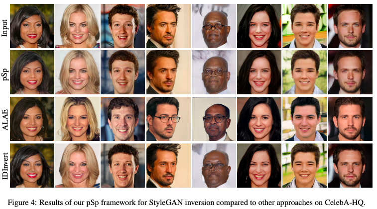 图:pSp框架和其他方法在CelebA-HQ数据集上的对比