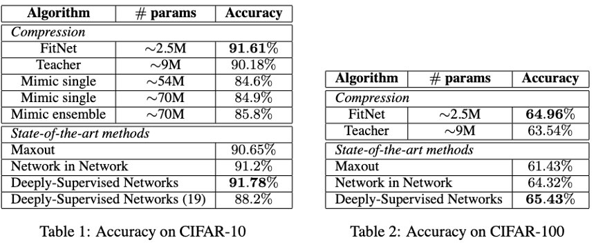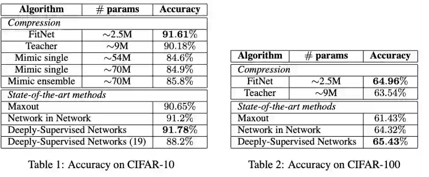 经过训练的网络提供了一种新的学习-中间-表示让新的网络去模仿。这些表示有助于学生有效地学习,被称为hints。