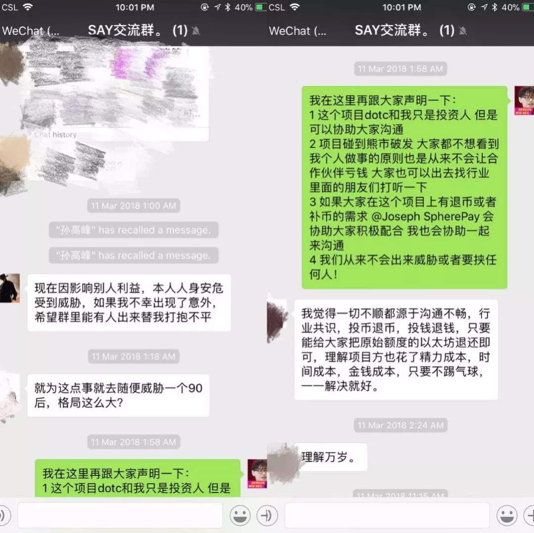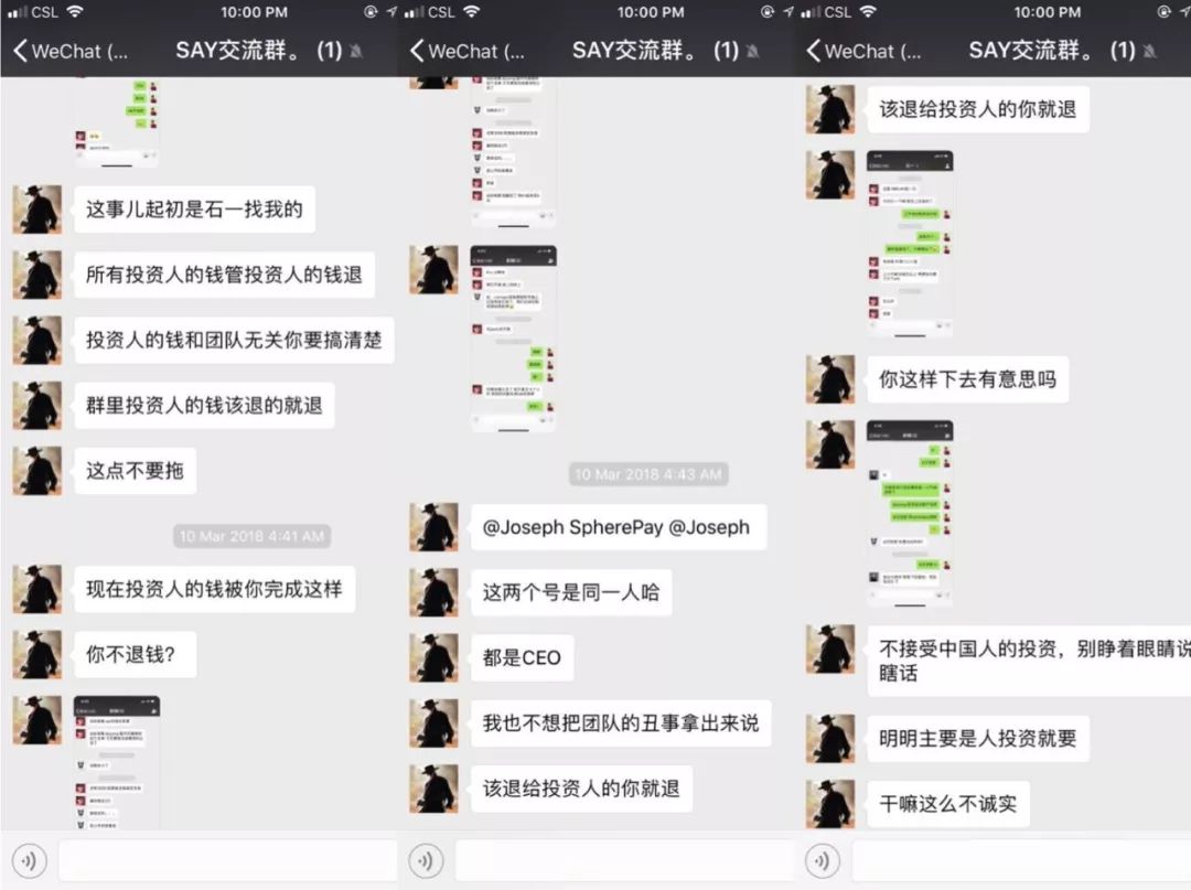 3月11日,孙高峰在SAY的社群中要求石一、陈恩永(Joseph)退币。