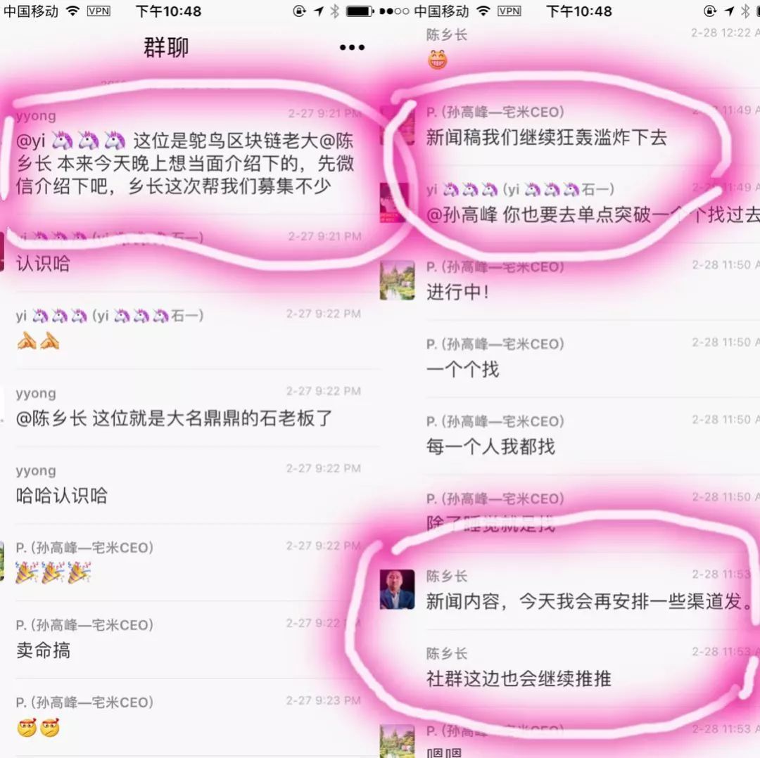 早期加入SAY讨论群的人,更多是拥有资源的币圈老手,大多充当代投的角色。比如陈乡长,他不仅是区块链媒体“鸵鸟区块链”的创始人,还在群里为SAY的募资出了不少力。根据聊天记录,铅笔道记者发现,如此一批人利用资源建立SAY的投资社区不断圈人。