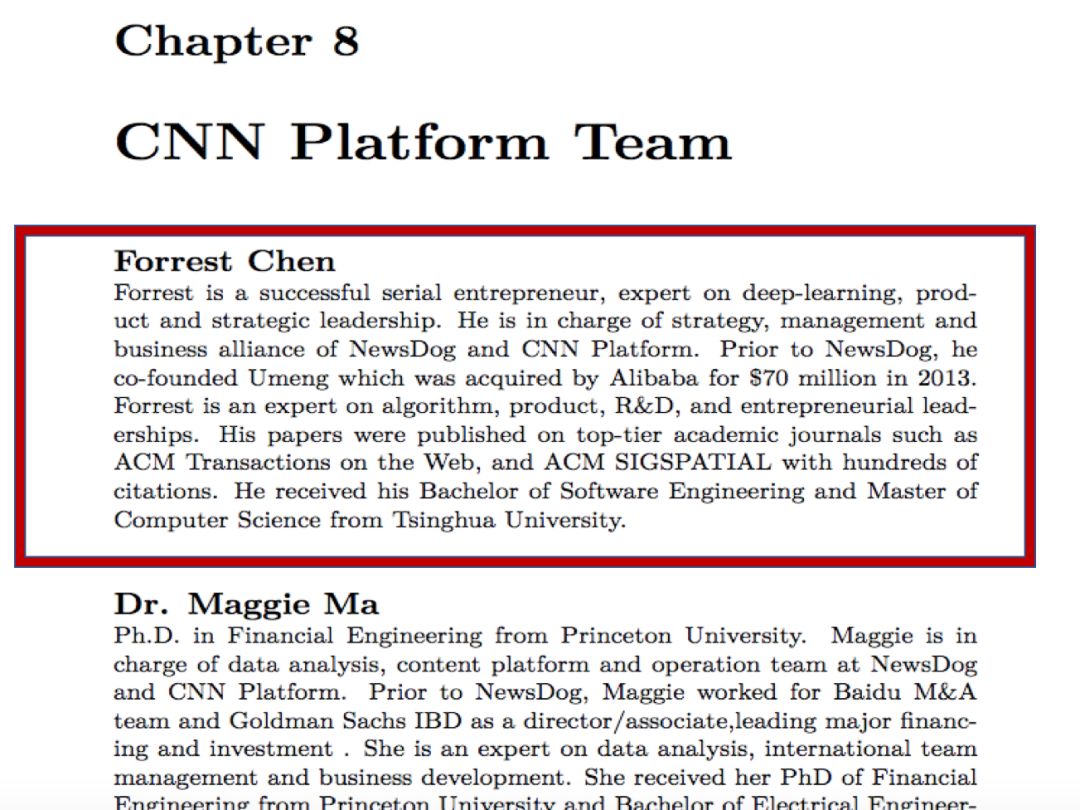 CNN白皮书显示,项目实际人为Forrest Chen(陈彧堃),即NewsDog创始人。
