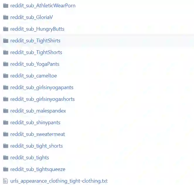 整个项目和 nsfw_data_scrapper 项目一样提供对应的图像超链,不同类别及子类别都有对应的 TXT 文件,所有超链都储存在 TXT 文本中。如下所示为简单的数据示例,因为本文这个数据集尺度有点大,我们以 nsfw_data_scrapper 数据集为例: