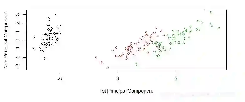 以iris数据集为例,随机提取二十个样本为测试集,对剩余样本使用“rbfbase”核进行降维以及对应的预测,例子使用了iris数据集,代码及结果如下
