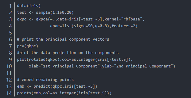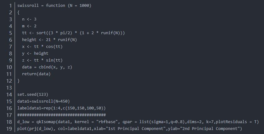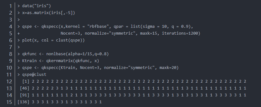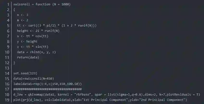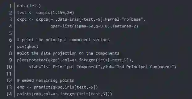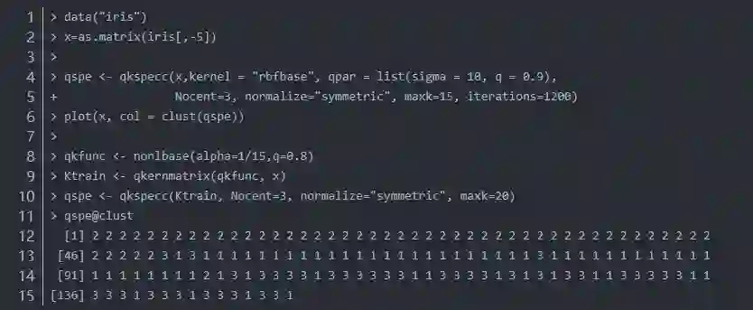 这是一个关于以核方法为主的R包介绍,这个包包含了许多用于分类,聚类降维和可视化的非线性机器学习工具。该包使用了条件负定核(CND kernel),共集成了26个核,包含q核版本和cnd版本,其中包含DBSCAN,谱聚类,广义判别分析 (GDA),主成分分析(PCA),Isomap,线性判别分析(LLE),Sammon mapping和tSNE。