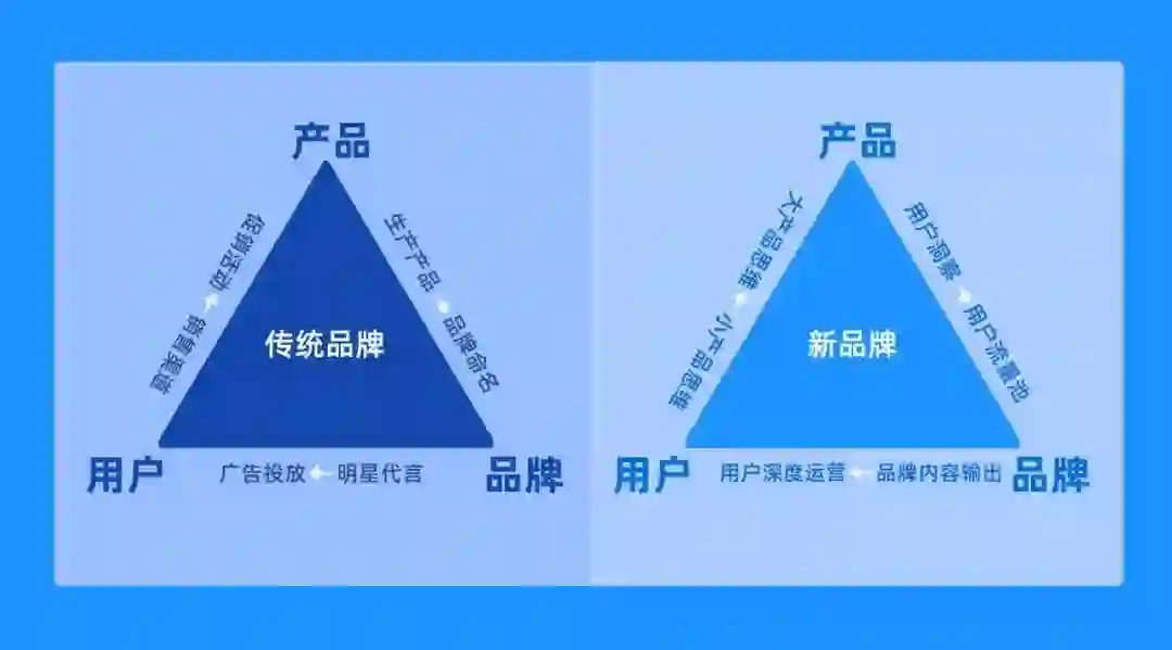 传统品牌从“我有什么产品,市场就需要什么,我卖什么,用户就买什么”的产品思维,转向“我服务哪些用户,和用户共创品牌,为他们创造适合的产品”的用户思维、新品牌经营逻辑。