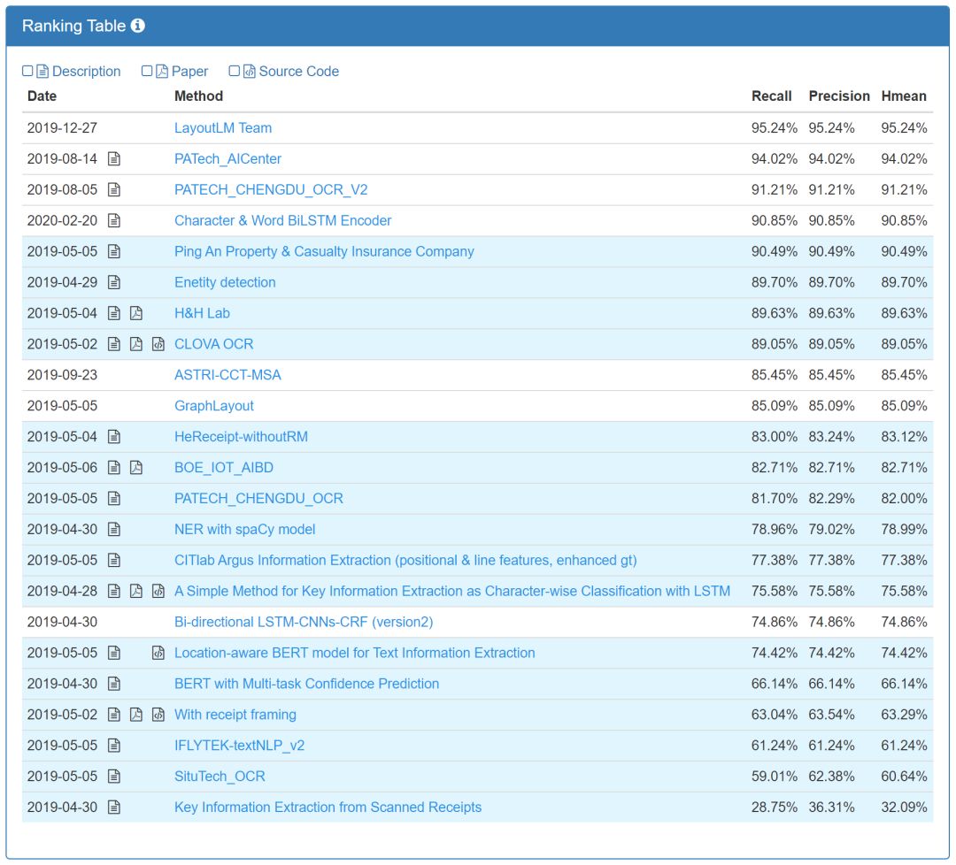 图3:SROIE 测评排名情况[4] (截至2020年3月)