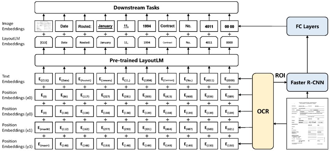 为了建模上述信息,我们需要寻找这些信息的有效表示方式。然而现实中文档格式丰富多样,除了格式明确的电子文档外,还有大量扫描式报表和票据等图片式文档。对于计算机生成的电子文档,我们可以使用对应的工具方便地获取文本和对应的位置以及格式信息。而对于扫描图片文档,我们使用 OCR 技术进行处理,从而获得相应的信息。通过两种不同的手段,我们几乎可以使用现存的所有文档数据进行预训练,保证了预训练数据的规模。