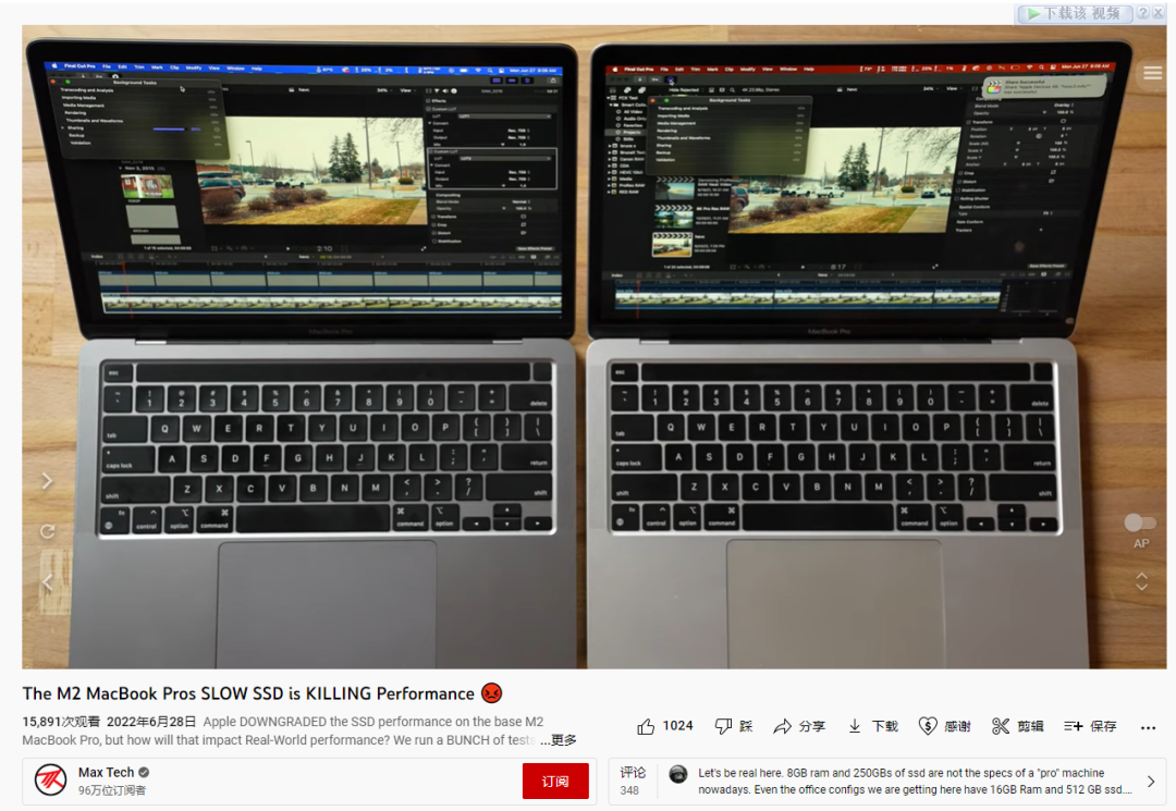 值得一提的是,配备 256GB 固态硬盘的基本型号 M2 MacBook Air 是否只配备了一个 NAND 存储芯片,还有待观察。上个月,人们发现基本型号 M2 MacBook Pro 的固态硬盘速度明显慢于同等的 M1 型号,原因是它只有一个 256GB 存储芯片而不是两个 128GB 芯片。由于虚拟内存交换所需,较慢的 SSD 速度有时会影响整体系统性能。