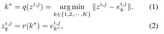量化器根据最近邻分配原则负责将位置 (i, j) 处的向量量化为来自 Codebook 对应的码字(codewords):