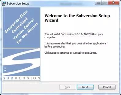 【步骤2】双击安装文件(本文是Setup-Subversion-1.8.13.msi)。