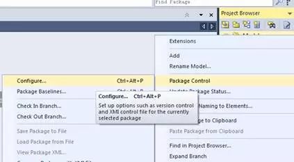 【步骤30】右击Project Browser中的愿景包,在快捷菜单选择Package Control | Configure。