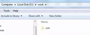【步骤21】单击OK,可以看到work文件夹下有.svn子文件夹。