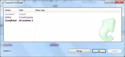 【步骤26】右击文件夹youma的图标,在快捷菜单选择SVN Commit。在对话框的说明栏输入说明文字,例如“First time to commit”,单击OK。