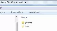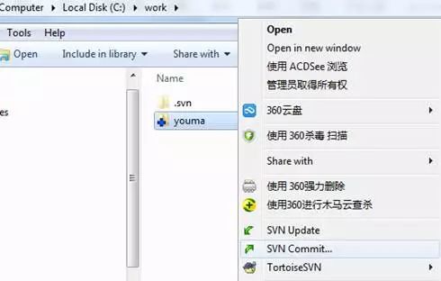 【步骤23】右击youma文件夹的图标,在快捷菜单选择TortoiseSVN|Add。
