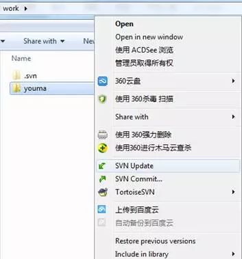 【步骤27】右击文件夹youma,在快捷菜单中选择SVN Update。