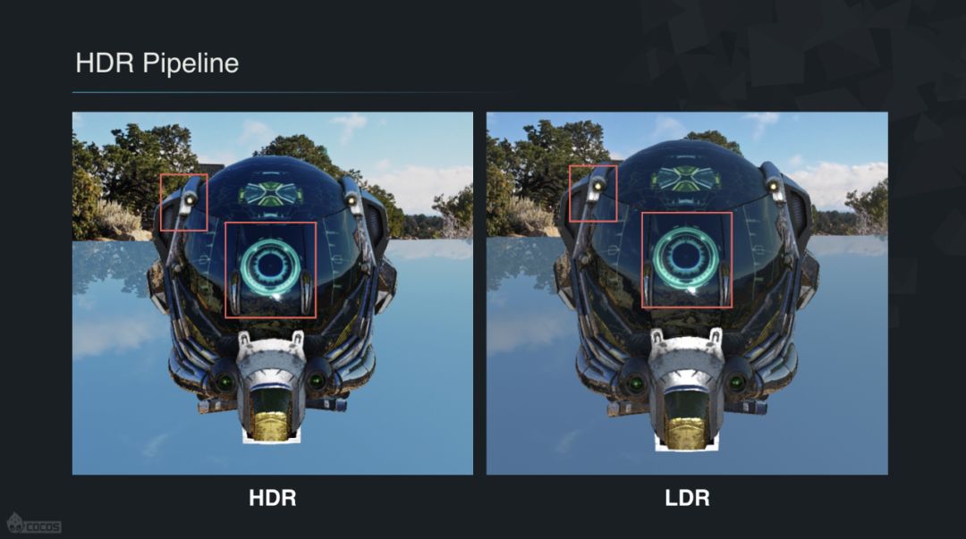 为了在高端设备上有更好的表现力,Cocos Creator 3D 的渲染管线分为 HDR 和 LDR 两套,在 HDR 管线中,相机空间的颜色会被转换为更高动态范围的 HDR 图像空间颜色,这种转换可以在支持 WebGL 2.0 的设备上开启,并且不会增加损耗,与 LDR 几乎没有性能差异。