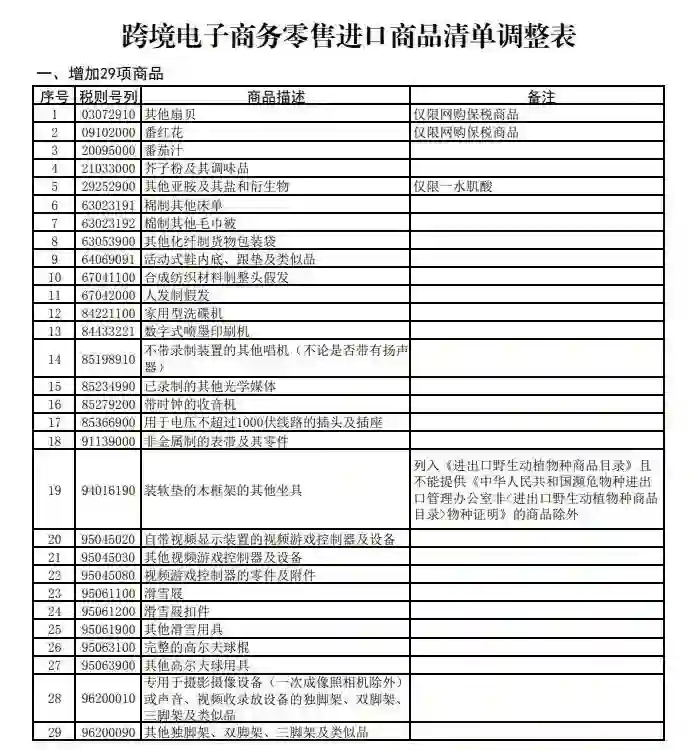 【8部门公告调整跨境电子商务零售进口商品清单】财政部等8部门发布公告,自3月1日起,优化调整跨境电子商务零售进口商品清单,增加滑雪用具、家用洗碟机、番茄汁等29项近年来消费需求旺盛的商品。(人民网)