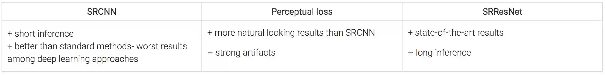 尽管 SRCNN 优于标准方法,但还有很多地方有待改善。如前所述,该网络不稳定,你可能会想优化 MSE 是不是最佳选择。