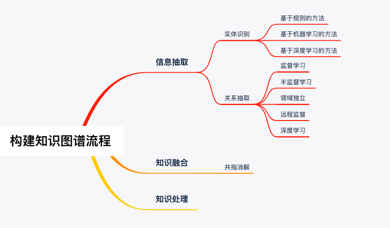 知识图谱构建的过程一般包含三个部分:信息抽取 (information extraction)、知识融合(knowledge fusion)和知识处理 (knowledge processing)。