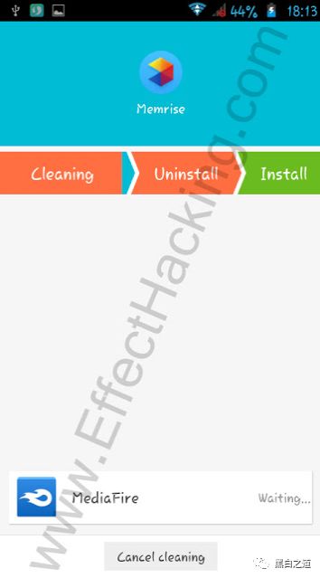 5.选择应用程序,然后点击“清除”。它将开始清理所选应用程序。也就是说,MoboClean将卸载应用程序然后安装它。