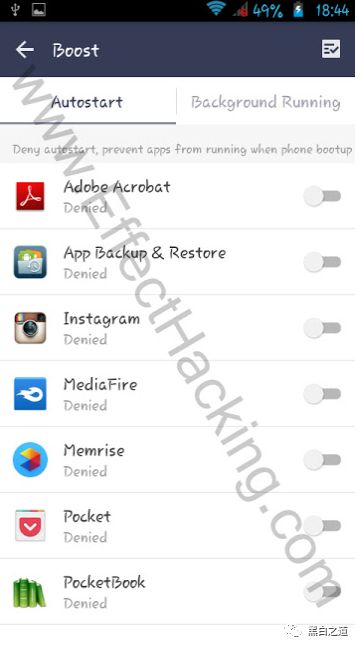 然后,如果您想提高手机的性能,请点击“Boost”,然后禁用不必要的启动和后台应用程序(请参见下图)。