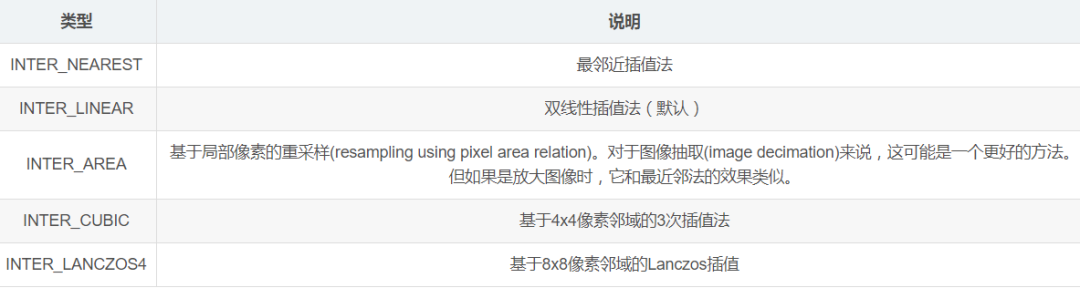 #dst为输出图像,类型与原图像相同dst = cv2.resize(src, dsize[, dst[, fx[, fy[, interpolation]]]])