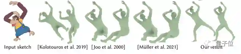根据这三者预测,再使用最先进的优化框架(optimization framework),并用专门设计的一种新的损失(loss)来平衡姿势自然度,以及与输入草图的相似性,AI就能最终推断出符合画者意向的3D姿势。