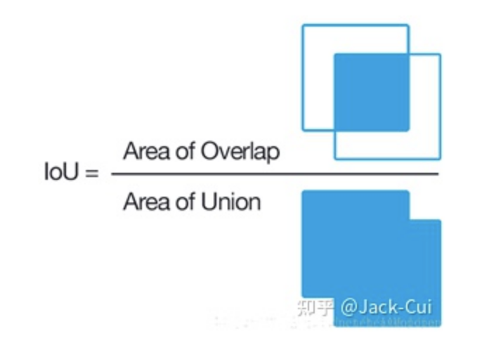IOU 即Intersection over Union,也就是两个box区域的交集比上并集,下面的示意图就很好理解,用于确定两个框的位置像素距离。