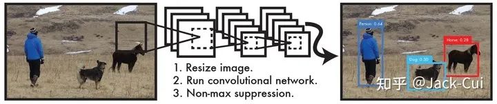 经过网络处理后,将 的结果送入 NMS ,最后即可得到最终的输出框结果。