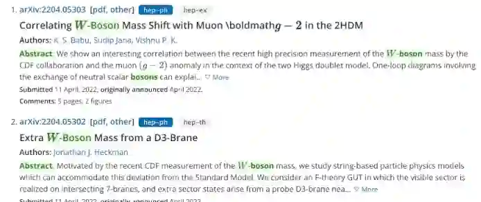 [2]https://arxiv.org/search/?searchtype=all&query=W+boson&abstracts=show&size=50&order=-submitted_date
