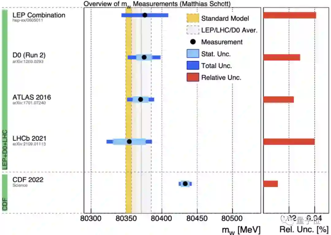 对此,Matthias Schott教授还新建了一张图表,可以看到,此次7σ的结果与此前的测量结果完全不重合,确为一个孤证。