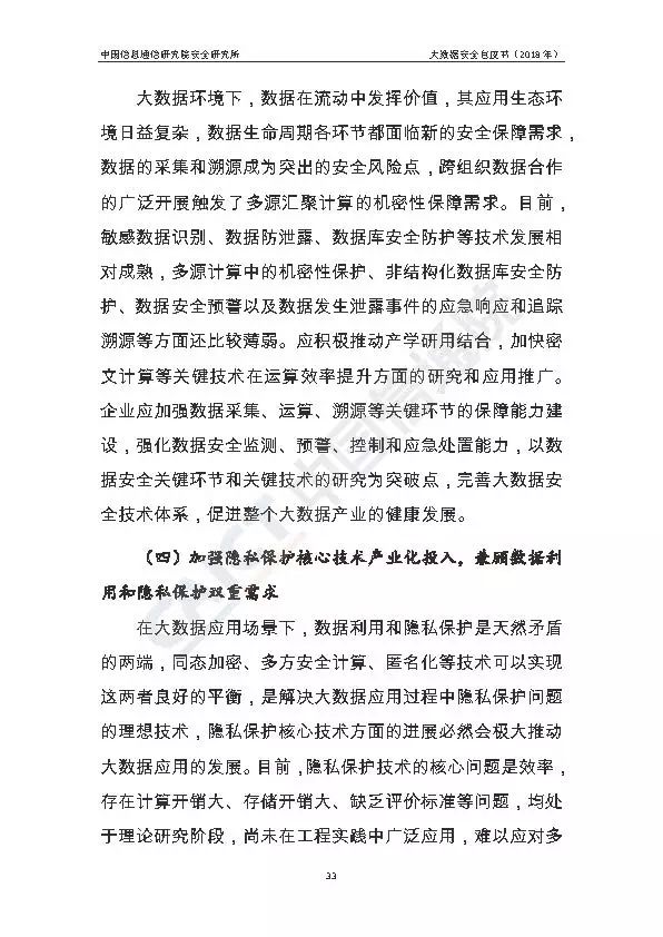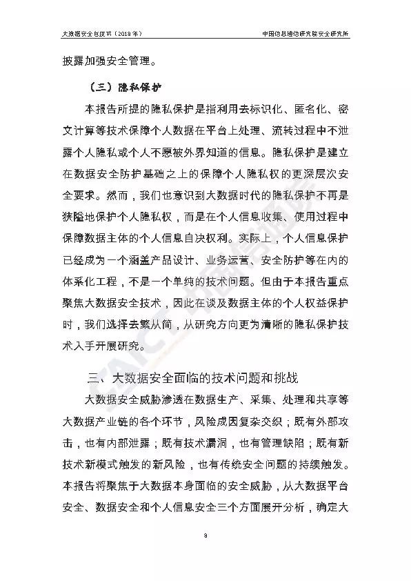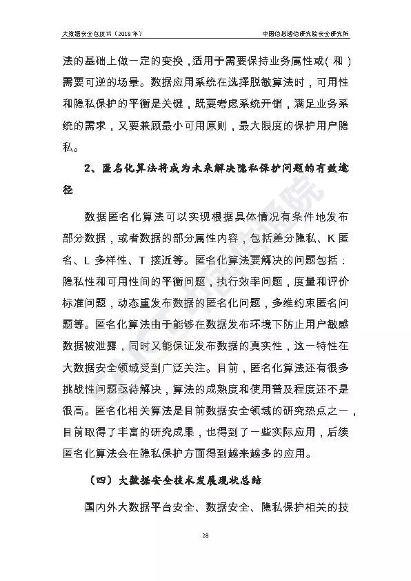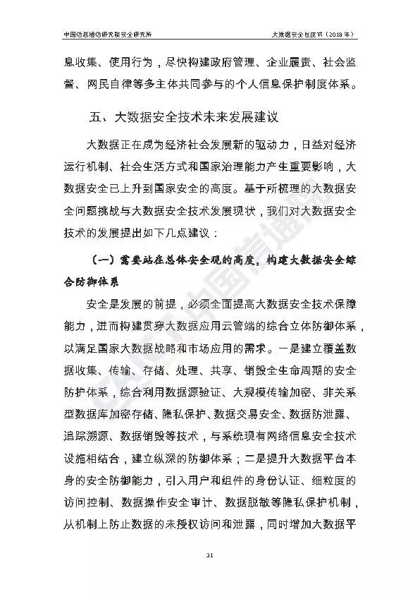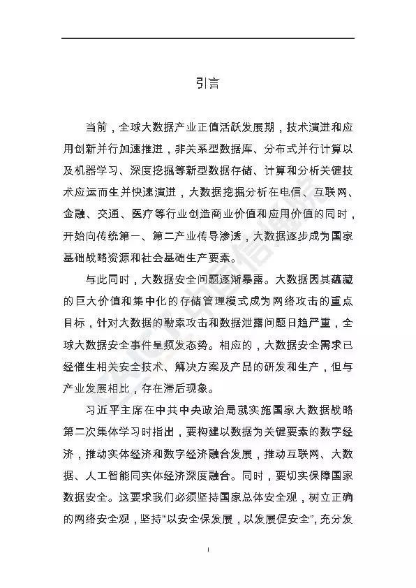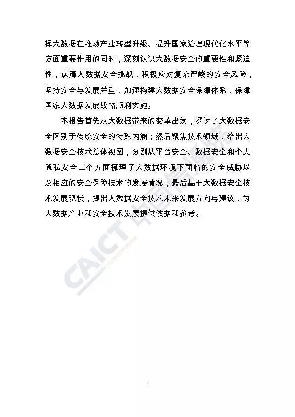 本报告探讨了大数据安全的特殊内涵,梳理了发展情况,并基于现状提出了未来发展方向与建议。