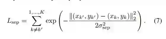 由于刚刚开始训练时候的输入时纯 random distribution,故可能导致提取出的 landmark 聚集在中心,可能会导致 separation 效果不好,因此而落入 local optima,故设计了该 loss。