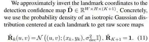 人身体的 pose 用 14 个 dots 表示,在 dots 处还加入了高斯噪声,有利于 regularization,且有利于网络更快学习到这个特征。
