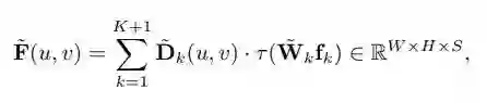 在这里,文章将他当做 soft mask 来用,用 mask 提取后再用一个 linear operator 来讲这些 feature map 映射到一个更低维的空间,至此,local latent descriptor 就被生成了。