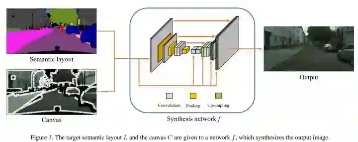 canvas 和 input layout 作为 synthesis network 的输入,生成最终的输出。