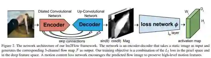 用 u-net 训练一个模型:输入是一个静态的帧,输出的预测的五帧光流信息,模型在 YouTube 数据集上训练。