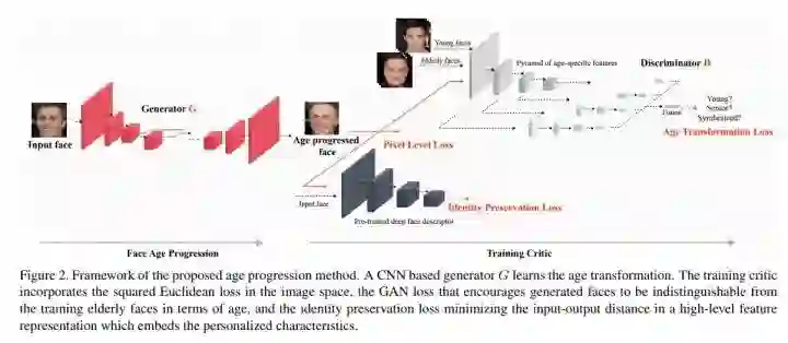 CVPR 2018 Oral,intro 和 related works 主要讲了现有方案大多将年龄信息优先而 identity 信息次之,换句话说,就是生成不同年龄的同时,identity 信息不能很好保留。