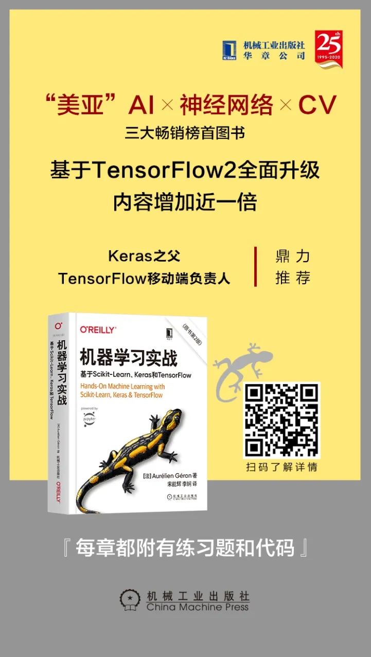 国外AI"四大名著"之一!AI霸榜书重磅更新!"美亚"AI+神经网络+CV三大畅销榜首图书,基于TensorFlow 2和新版Scikit-Learn全面升级,内容增加近一倍!前谷歌工程师撰写,Keras之父和TensorFlow移动端负责人鼎力推荐,从实践出发,手把手教你从零开始搭建起一个神经网络。