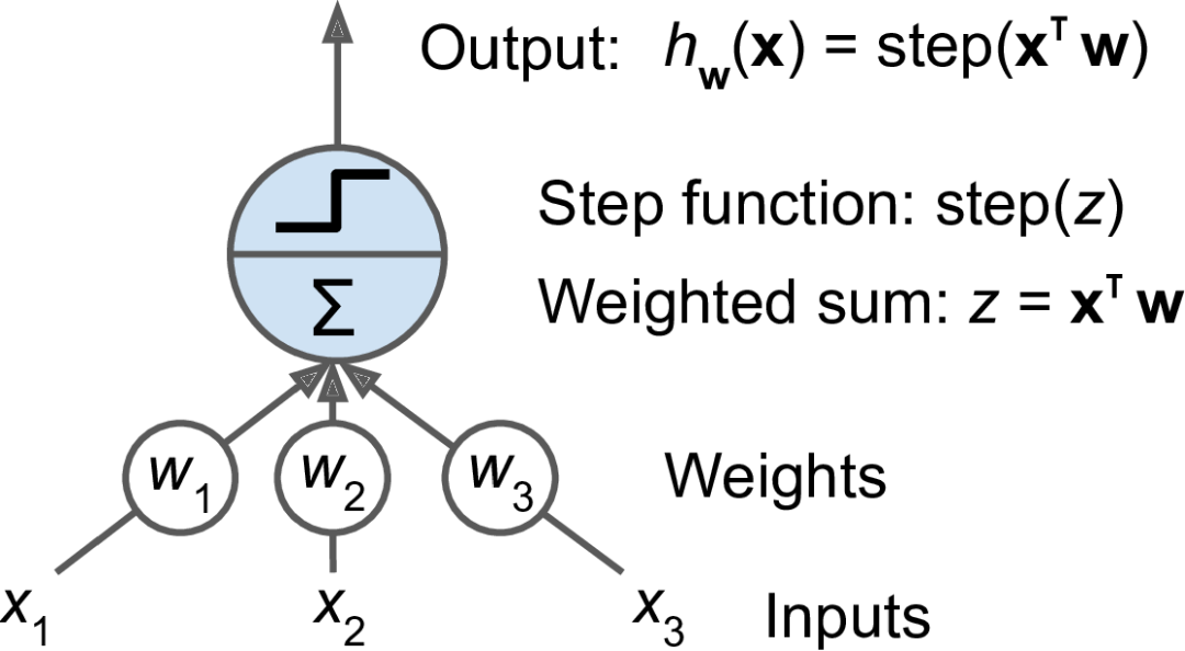 图4. 阈值逻辑单元:人工神经元,计算其输入的加权和,然后应用阶跃函数