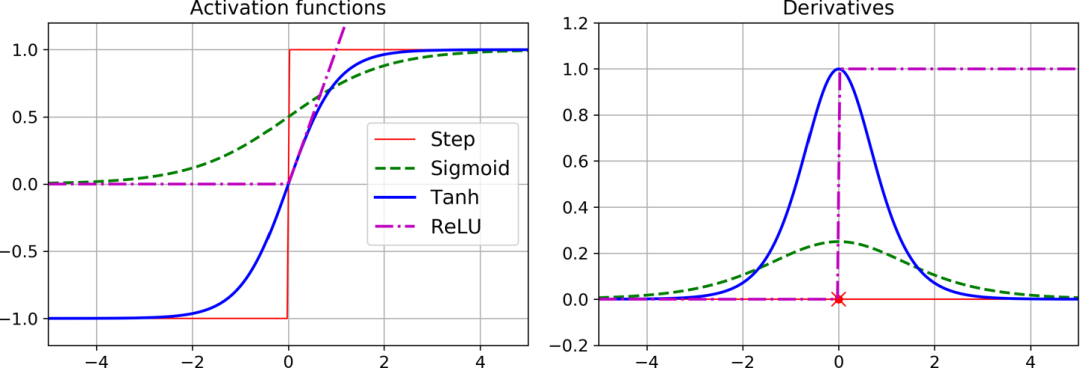 函数φ称为激活函数:当人工神经元是TLU时,它是阶跃函数 ( 但我们在后面会讨论其他激活函数 )。