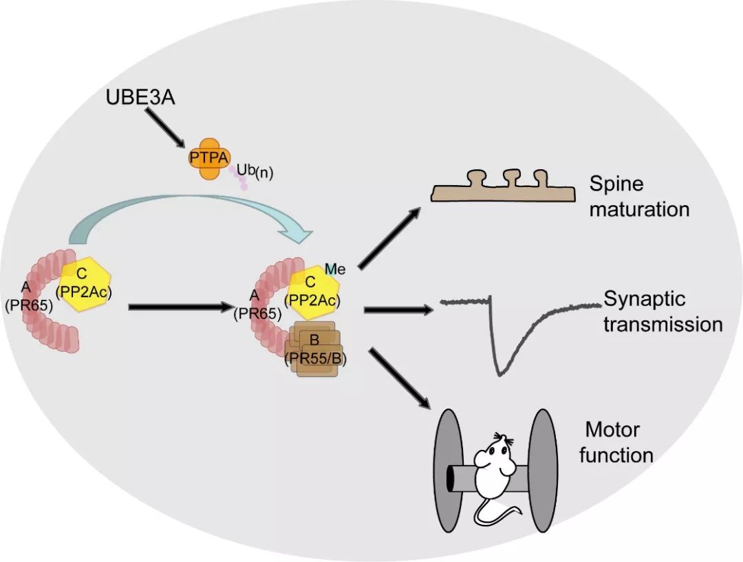 UBE3A-PTPA-PP2A信号通路模式图