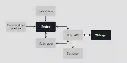 系统本身还要考虑后台存储(SQLite?)和数据导入导出,前端框架选型和开发,前后端交互(django? flask? RestAPI?)等等的问题。下面是 Prodigy 的简单架构图。