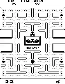 电动游戏,主要指玩家需要根据屏幕画面的内容进行操作的游戏,包括主机游戏吃豆人(PacMan,见图1-2)、PC游戏星际争霸(StarCraft)、手机游戏Flappy Bird等。很多游戏需要得到尽可能高的分数,或是要在多方对抗中获得胜利。同时,对于这些游戏,很难获得在每一步应该如何操作的标准答案。